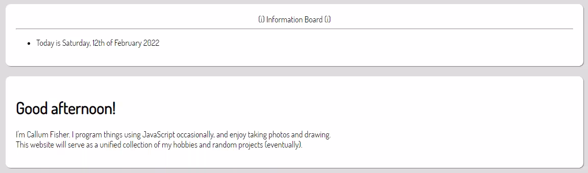 - [=] Made the Directory (homepage) a bit sleeker: Centered the welcome text and merged the functions of the infoboard with the welcome text.