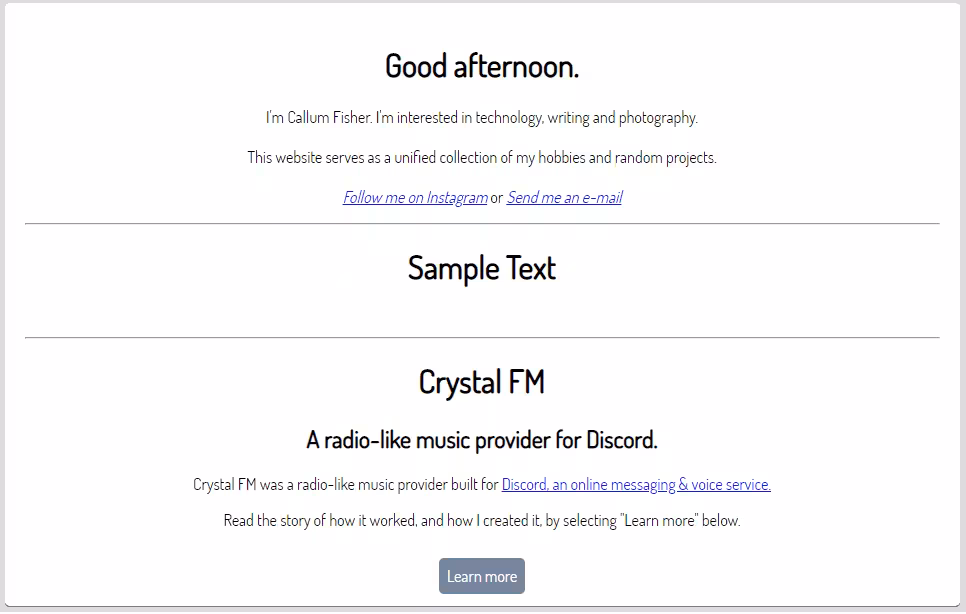 - [+] This server now hosts a page for my new Discord bot, Crystal FM.